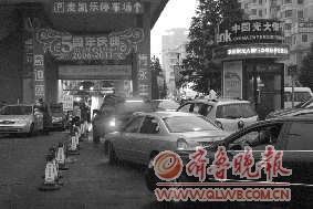 18时40分左右,记者采访完毕,准备从香港中路麦凯乐靠近泉州路路口搭乘出租车赶往宁夏路市南软件园。可足足等了15分钟不见一辆空出租车,直到记者走到华客商务宾馆附近时也没有搭乘到一辆车租车,无奈之下只能跑步前往市南软件园。路上仍旧没有看到一辆空出租车,只见大片被堵在路上排队等候的私家车。