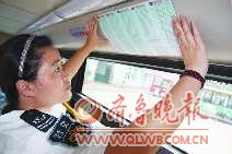 7日,为方便乘客准确、及时获知长途客运车时间,宏达巴士公司8路队在沿途经过青岛长途汽车站的8路、126路、373路,总计103部公交车上全部贴上了最新的长途客车时刻表。本报记者 蓝娜娜 本报通讯员 赵翔 摄影报道