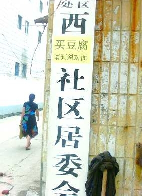 作品描述:卖豆腐的广告贴在居委会的牌子上,真是。