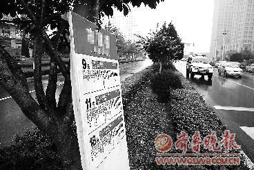 9月7日,在烟台路一公交站点上,公交站点指示牌拴在绿化树上,当做临时公交站牌使用。据悉,此处站点整改公交站牌,为不影响市民外出乘车选择公交路线,有关部门采取此方式服务市民。