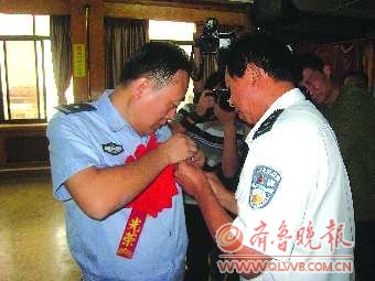 9月8日下午,济南市公安局对近日被公安部追授为全国公安系统二级英模的盖继纲进行表彰,并为个人一等功荣立者经侦支队中队长褚洪泉举行了“送奖上岗”授奖仪式(如图)。