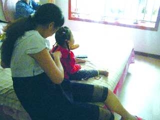 8日下午,记者在梦梦家里见到她的时候,她正坐在床上看电视,妈妈在一旁给她梳辫子。见有陌生人进屋,梦梦马上笑着挥起左手说“阿姨好”。她小小的右手被绸布裹住,只有大拇指露在外面。