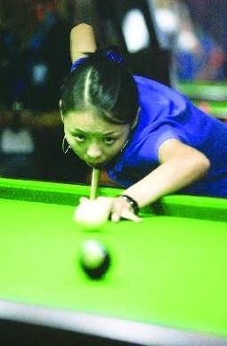 8日晚,山东省全民健身运动会在临沂开杆。本次比赛云集了来自全省17地市的百余名专业台球手,比赛将于10日结束。图为比赛现场,选手在全神贯注击球。