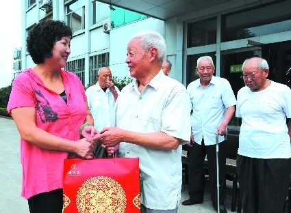 临沂市拥军优属协会一行,将中秋节慰问品送给军队离退休老干部们。 为了进一步关爱军队离退休老干部,临沂市拥军优属协会主要负责人带领部分理事,来到临沂市军分区第二干休所,将价值1.4万余元的月饼、保健品等送给了该所的老功臣们。