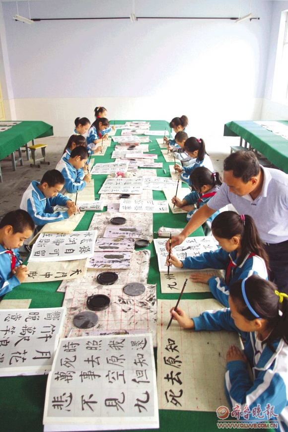 据了解,泰安市已经有部分学校的书法教学初具规模,徐家楼办事处的栗家庄小学便是其中之一。