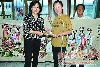 本报9月8日讯(记者 董传同 通讯员 安红芬) 7日,德城区患病女孩张红彦在家中迎来一位特殊客人,德州市民政局局长史秀芝带着5000元救助金专程来探望,并个人拿出1万元用来购买张红彦的十字绣《红楼群芳图》。