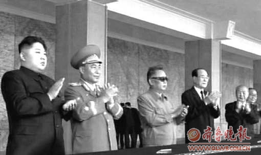 2011年9月9日,朝鲜平壤,朝鲜电视台直播画面显示,朝鲜领导人金正日与他的儿子、朝鲜劳动党中央军事委员会副委员长金正恩一起出席建国63周年阅兵式。1948年9月9日,朝鲜民主主义人民共和国宣告成立。 CFP供图