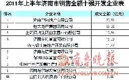 在7月克而瑞出具的2011年济南楼市上半年报中,成交金额前十名有6席为外地来济的一线品牌房企。其中,济南中海以30.35亿高居榜首,恒大济南以22.38亿、上海绿地以19.64亿分列二、三位。且前三位的成交额达72.37亿元,占前十名总成交额的52%。