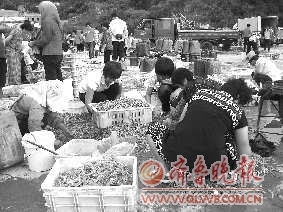 11日下午5点,山东村码头挤满了购买海鲜的市民。不少卖海鲜的摊主表示,海鲜都是渔船刚打回来的,但是中秋节前购买海鲜的人太多,有点供不应求。