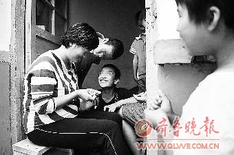 在一间混杂着各种气味的教室里,别士红老师正在给一名智障孩子修剪头发。孩子安稳地坐在椅子上,可脑袋不住左摇右晃。“听话,快过中秋节了。老师把文文打扮得漂漂亮亮。”别老师声音沙哑而疲惫。