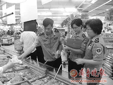 10日,东营区畜牧局开展动物产品安全整治行动,加强对动物产品的检疫、监督、监管,确保市民吃上“放心肉”。据区畜牧局工作人员介绍,整治行动当日,执法人员分组对明月市场、海河市场、银座超市、百大超市等全区的动物产品经营场所进行“拉网式”检查,检查内容主要包括有无检疫证明、验讫印章、生产日期等,对发现的违法经营者进行严厉打击,有效地净化了节日肉食品市场。 本报记者 顾松 摄影报道
