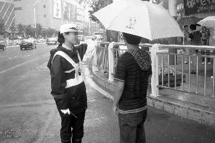 执勤时的警花们表情很严肃,但在和司机单独交流时,她们却是微笑着敬礼后再说话。在执勤中,不少市民向她们问路,警花们都逐一做详细讲解。