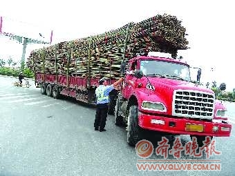 近日,陵县交警大队一中队民警在国道104线巡逻时,发现一辆载物严重超高、超长的违法车辆。车上满载竹竿,堆得非常高,竹竿超出车身大约3米,在路中央左摇右摆地行驶,非常危险。经检查发现,这辆大货车车长4.5米,载货长度近7米,属于严重违法车辆。民警依法将该车扣留,并对驾驶员做出了相应处罚。