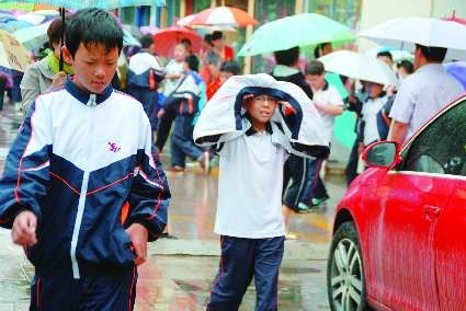 自中秋节前开始,阴雨天气持续了三四天。13日夜间到14日的一场降雨让气温骤降,也给市民带来很多不便。14日,滨城区实验小学放学后,一位没带雨具的学生把上衣倒翻至头顶遮雨。记者从山东省气象台获悉,15日、16日两天依旧有局部小雨或阵雨,并伴有东北风,市民出行请注意保暖并携带雨具。