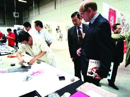 陈树勇除了现场表演指画外,还巡回举办了“贺中国共产党成立90周年———中国·陈树勇指画欧洲展”,展出了40幅寓意美好的指画作品,所到之处大受欢迎。“艺术无国界。绘画是一种无声的语言,它的感染力,超越了人种和意识形态的差别。”陈树勇对此深有感触。