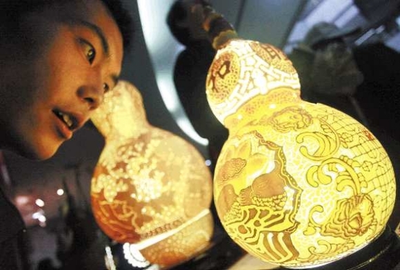 造型各异的“太空葫芦”、世博会期间曾风光一时的镶嵌葫芦、葫芦丝、葫芦花瓶……葫芦文化艺术节上的精品葫芦可谓巧夺天工。为突出本地特色和亮点,聊城市还确定东昌府区作为“国民休闲汇”活动的重点,也成为省“国民休闲汇”活动10个重点区之一。今年的葫芦文化艺术节时间为14日至16日,共有来自河北大城、邢台、甘肃兰州、辽宁本溪及聊城本地共130多家葫芦制作商户参展。