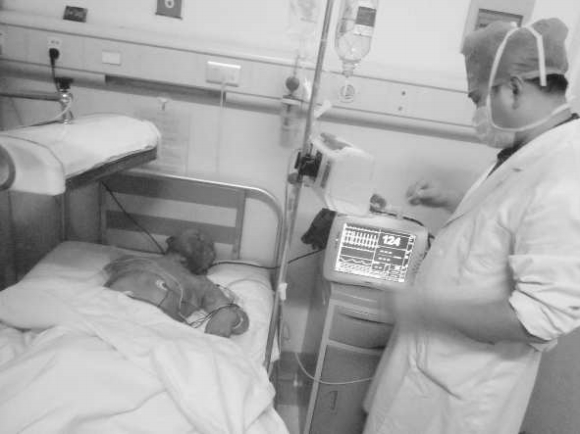 14日上午,记者在聊城市人民医院烧烫伤病房看到,烧伤的男子躺在病床上,医生为他用上了心电监护仪。“刚送到医院的时候,连血压和脉搏也没有,经过抢救才让他醒过来。”医生介绍,这名男子的脸部、胸前和后背上有大面积烧伤痕迹。