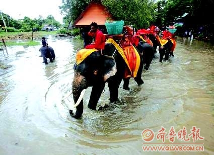 泰国持续一个多月的洪涝灾害,已致16个省受灾,80人死亡。9月12日,泰国首都曼谷以北约80公里的古城———大城府已经被淹,街道上可以行舟游泳。