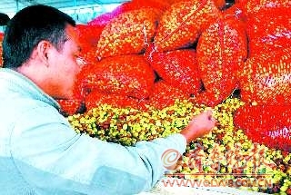 在济宁果品批发市场,一位果贩正在挑拣烂掉的枣子,以免影响到好的枣子。本报记者 李岩松 摄