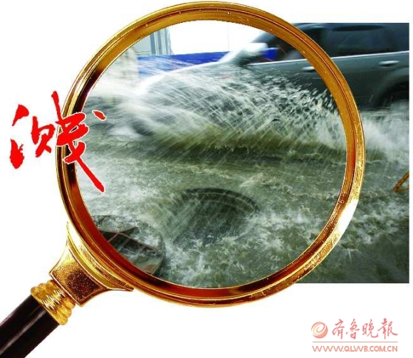 15日中午的一场急雨让岛城不少路段积水严重,一些主干道也未能幸免,车辆从积水中驶过,溅起一人高的水花。图为在南京路和辽阳路交叉口,车辆快速经过路面积水严重的路段。