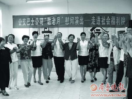 15日,青岛公交巴士公司慰问演出队为社会福利院的200多位老人表演了小合唱、魔术等节目,还邀请老人与演员同跳一支舞。据了解,虽然离重阳节还有一段时间,巴士公司已经进入“敬老月”,公司所属七个路队将用不同形式的活动为老人送上真挚的。