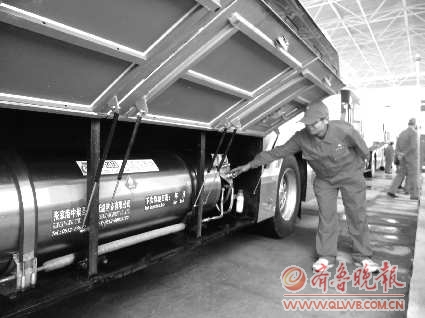 15日上午,在泰安迎暄大街一家加气站旁边,一个崭新的白色液态天然气罐在雨中显得格外醒目。据介绍,这是泰城首个液态天然气加气站,将天然气净化处理,再经超低温常压液化就形成液化天然气。天然气液化后可以大大节约储运空间和成本,而且具有热值大、性能高等特点。“天然气液态和气态的比例是一比六百,油气混合的公交车一天加一次气,使用液态天然气(LNG)驱动的公交车两天加一次气,大大节省了人工成本和时间。”在该加气站工作的陈师傅说。