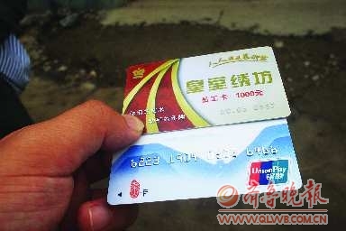周营镇另外一村庄的村民张女士向记者展示了一张类似于银行卡的塑料卡,上面写着皇室绣坊、员工卡等字样,并标有编号。“我们交押金时店主没有给收据,只是给了这张卡,说是凭借此卡可以取货和交货。另外,公司还专门办理了对应的工资卡。”张女士说,现在两个月的报酬都没有发了,手头上也没有收据,一旦出现问题,都不知道如何讨公道。
