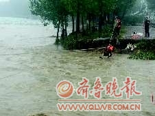 15日早上7点59分,潍坊朐山消防中队接到群众求救电话,在临朐与青州交界处龙岗镇张佩环小河圈村大坝边有人因大水把路冲垮被困在道路的一端,情况十分危急,急需救援。
