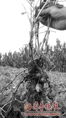 海阳市农技站副站长姜常松告诉记者,虽然一些早熟的花生已经收完了,但比重非常小,只占了海阳总种植面积的20%-30%。姜常松走访了多家农户,发现已经收获的花生产量和质量都比不上去年。“今年的花生单株结果数比去年少了2-3个果,并且饱满度不高。今年每亩花生的产量比去年低了20多公斤。”减产已成定局。