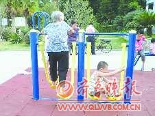 拍摄时间:9月3日拍摄地点:某社区作品描述:在同一个体育器材上,老人与小孩的玩法各不相同。作者:戚侣奖金:20元