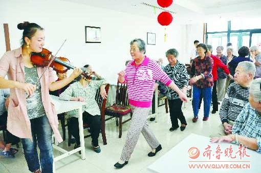 唱着唱着,演员们不知不觉就坐到了老人们中间。老人们也好像放开了,在大家的要求下,一位老大妈站起来唱起《80年代的新一辈》,林玫竹拉起小提琴伴奏;随后,老人们更是欢快的排成一队,在小小的餐厅里扭起秧歌。很多老人笑的合不拢嘴。“高兴,我高兴,很久没看到这样精彩的表演了。”坐在台下的一位大妈说,孩子们来了,让大家觉得很温暖。