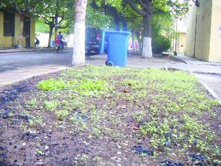 整治刚刚过了3个月,铁路小区的脏乱差现象又开始抬头。14日,记者在该小区内发现,绿化带空地上又冒出绿油油的小青菜,垃圾桶旁边是随手乱扔的垃圾……