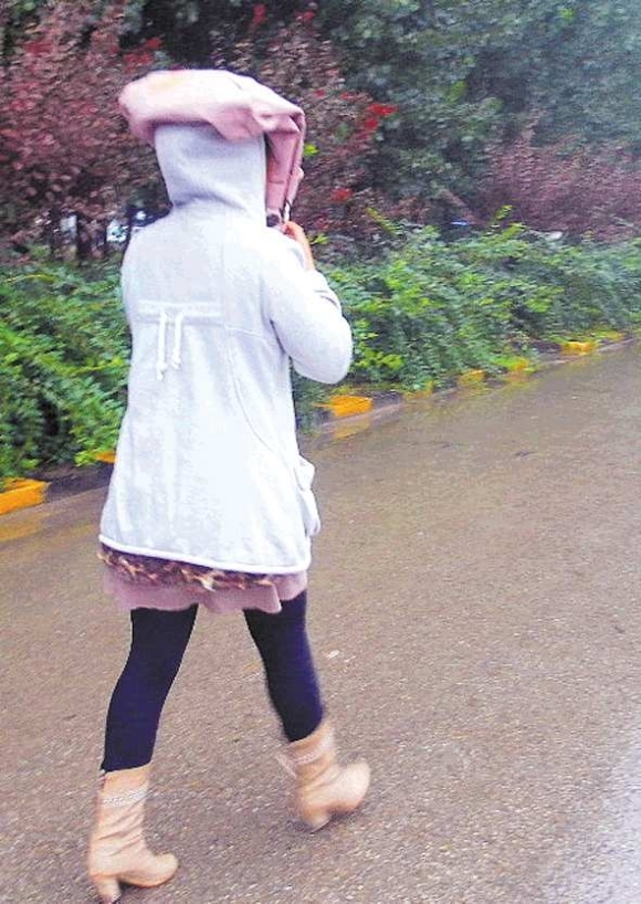 自述:雨天女孩顶包避雨。 (奖金20元)