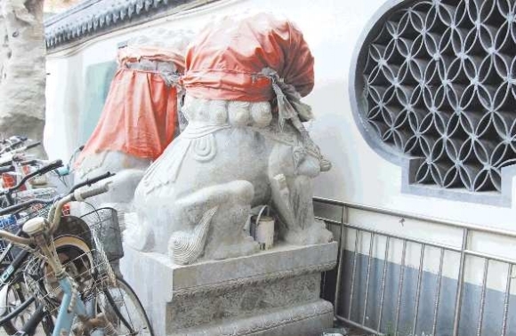 自述:两头石狮子红布蒙头。