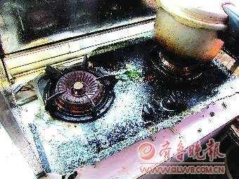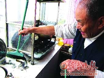 C05?旷6706老宋正在清理煤气灶周围的玻璃碎片。 18日上午,老宋家的煤气灶钢化玻璃突然“爆炸”,所幸没有人受伤。销售该品牌煤气灶的王经理表示,必须对煤气灶进行查看才能确定“爆炸”原因,“从目前的情况推测,可能是煤气灶回火造成的。”图为煤气灶四周的玻璃面板残缺不全。 本报记者 寇润涛 摄影报道