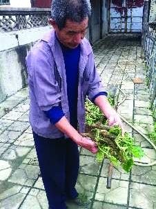 记者采访得知,与张云年有相同遭遇的村民还有不少,村民张青林在工厂北侧一家饭店里面弄了一个园子,专门种植蔬菜,两个月前厂子的烟囱从张云年家门口搬到了厂房北侧后,就和张青林的菜园子成了“邻居”,只有一墙之隔。张青林说,他在菜园里面养了十几只鸡,现在就活了一只,其余的都埋了,张青林随手拔出一棵叶子长得很好的小白菜,记者看到小白菜的根部已经开始腐烂,“地被污染了,种子根本发不了芽,这些很多看上去很好的小白菜其实根部已经开始烂掉。”