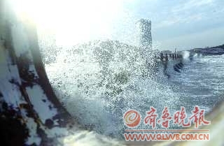 大风降温天气使烟台海滨广场白浪滔天,甚是壮观。 李泊静 摄