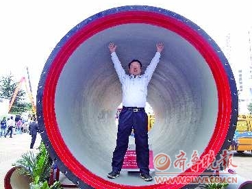 本报9月19日讯(记者 王光照 戚淑军) 19日,直径达2.2米的供水管在中国城镇水务发展研讨会上亮相,身高1.8米左右的“大个子”也可以在管内穿梭自如。据了解,这是国内投入使用的最粗供水管,而济南目前最粗供水管的直径为1.6米。