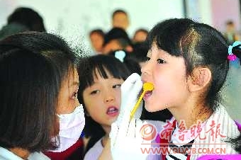 为了让小朋友们学会正确保护牙齿的方法,9月19日,中美合资-瑞金口腔诊所的口腔专家来到济南英才银座幼儿园阳光园,为这里的450余名儿童免费做口腔健康检查,并教给孩子们正确刷牙的方法和如何预防龋齿。 本报记者 陈文进 摄