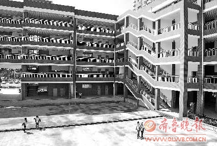 19日,记者在位于太白楼东路的济宁市第十六中学看到,新建成的“回”字形教学楼已经投入使用,学生正在教学楼内上课。但记者注意到,教学楼南侧的教室不少都是闲置的。