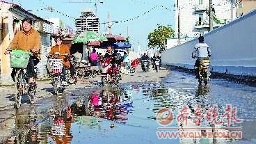 19日下午,在三八西路涵洞附近,由于下水道冒水,地面出现了近10厘米的积水,来往行人只能绕行通过。据附近环卫工人介绍,此处下水管道往外冒水已有好几天了,希望有关部门能尽快修理。 本报见习记者 王衍 常学艺 摄影报道