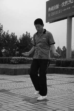 到了黄河十二路路口拐角处,刘春坤告诉记者,“这就是我每天跳绳的地方。夏天的这个时候,红绿灯已经由夜间的黄闪变为正常的倒计时状态了。我就看着红绿灯记时间跳绳,红灯的时间是32秒,绿灯的时间是43秒。大概3分钟的时间就能跳500多个。”刘春坤说着,就将随身携带的跳绳拿出来,“从开始跳绳到现在,我已经跳坏了三根了,这是第四根。”