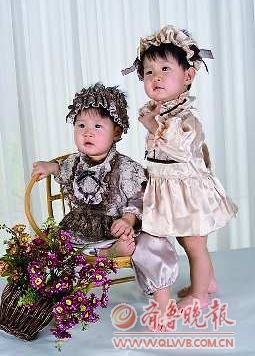 父母寄语:孪生姐妹花,天生一对,快乐加倍。