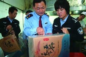 为从根本上杜绝“地沟油”,严防餐饮行业使用不合格的食用油,无棣县公安、工商等部门联合对辖区内内餐饮企业展开巡查。图为20日检查组检查一家酒店的食用油。通讯员 蒋惠庆 岳文静 记者 王晓霜 摄影报道