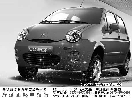 位于菏泽市人民路一中分校南500米路西的正邦电轿行,是奇瑞电动轿车菏泽指定经销商,为方便菏泽市民赏车试车,公司开通预约咨询电话