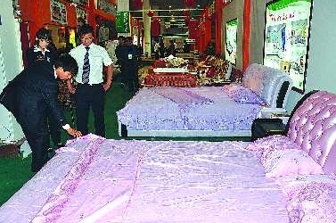 在巨野展区,许多走累了的人坐在福宝马利莱家具公司的参展沙发上不愿起来,“走累了在这里休息一下,这里的家具也很新潮。”市民刘先生掂着刚买到的大包小包物品坐在沙发上惬意地说。