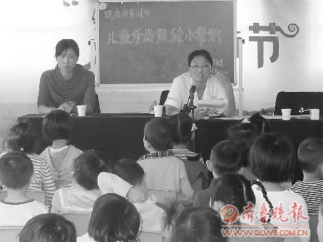 9月20日是世界爱牙日,今年的爱牙日主题是“健康口腔,幸福家庭,呵护孩子,预防蛀牙”。20日,秦楼社区卫生服务中心医务工作人员走进心苗幼儿园,普及爱牙知识。图为医务工作人员正在给孩子们讲解如何爱护牙齿。 记者 李宝然 摄影报道
