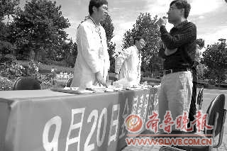 本报威海9月20日讯(记者 王震) 20日是全国第23个“爱牙日”,上午9点左右,威海市立医院开展了“爱牙日”宣传活动,同时还在市政府广场和市一医院门口等地免费为市民做口腔检查。