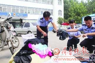 在薛城公安分局新华派出所院内,记者看到办案民警正在清点着一地的赃物,在院里的两间车库,也已被满满当当的赃物堆满。新华派出所赵月彬所长告诉记者,警方运赃物时,动用了搬家公司,来回几趟才将赃物运到派出所。