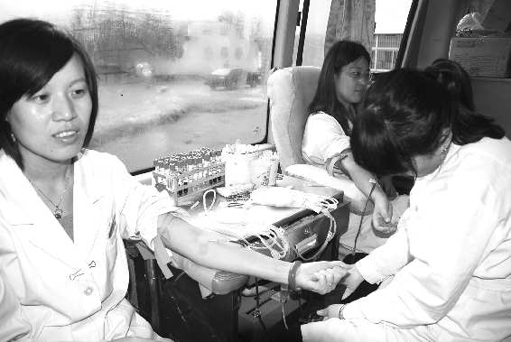 9月15日,东营市中心血站献血车开进胜利油田中心医院接受义务献血,131人共献血37800毫升。为缓解临床用血的紧张局面,东营市卫生局决定在全市开展临床输血业务的18家医疗机构中开展献血活动。 本报记者 顾松 本报通讯员 黄琨 摄影报道